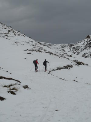 Für Schnee wahren wir am Samstag Nachmittag zu spät,für Wetter genau Richtig(Aufstieg noch bedeckt,Gipfel gröberer Föhnsturm,Abfahrt und Bierhalt bei Sonnenschein).Schnee schwer aber gut zu Fahren.In Rinnen gut,unten raus wurde es unter den Ski immer etwas lauter.(das gefällt den Steinski).Bire war nichts mehr lohnend.