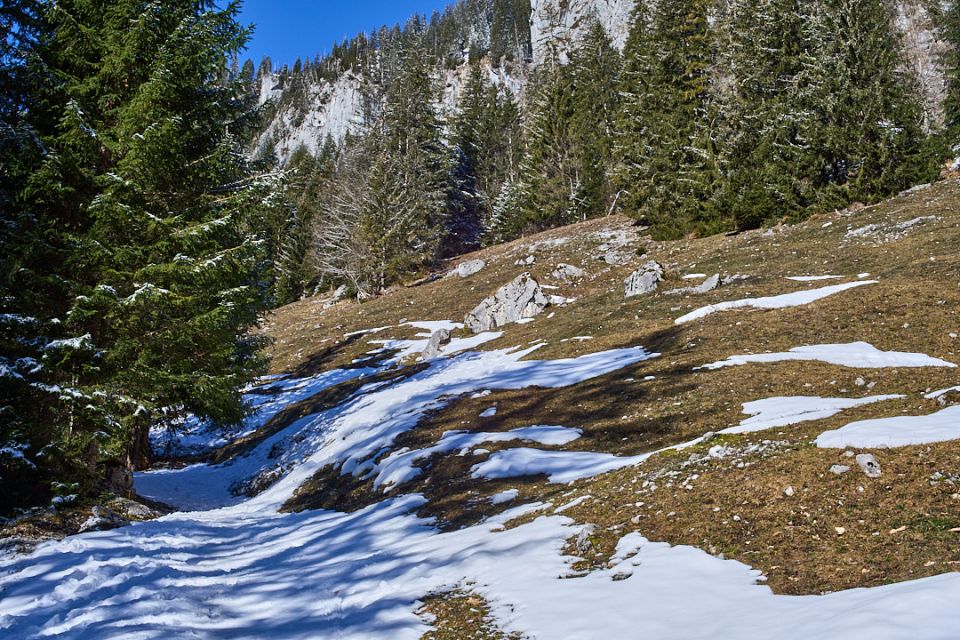 Unten schon bald kein Schnee mehr. Oben gehts noch längere Zeit.