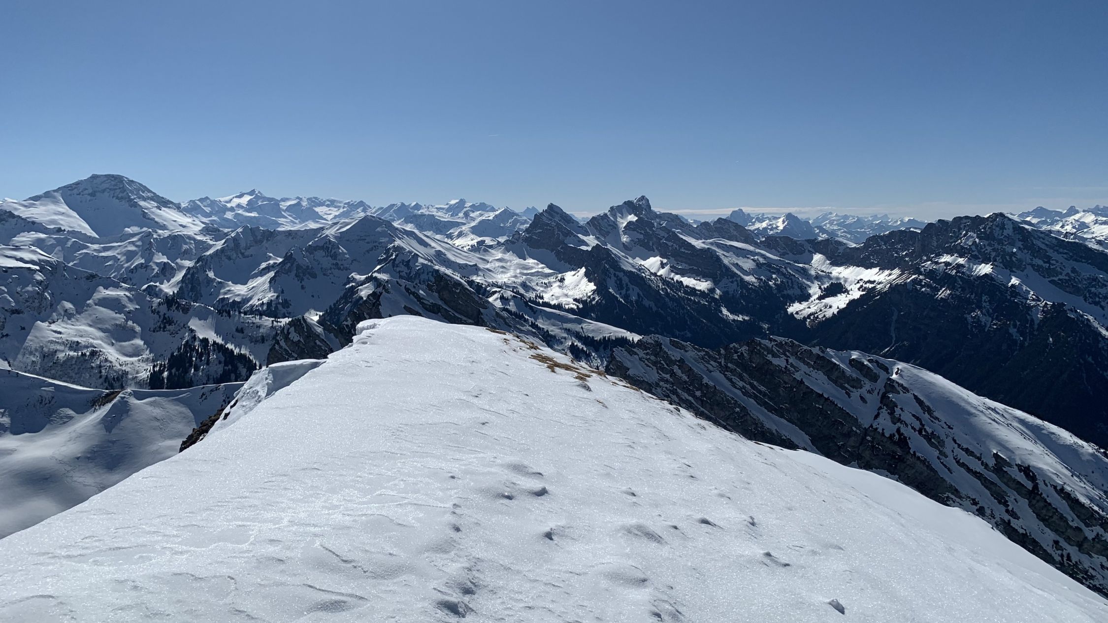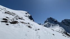 Start um 10:00 Uhr, Piste und NW-seitig noch hart, doch gut ohne Harscheisen gehbar.