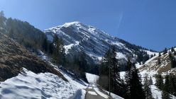 Geworkse durch den Wald hinauf; einige Nassschneerutsche im Steilhang.