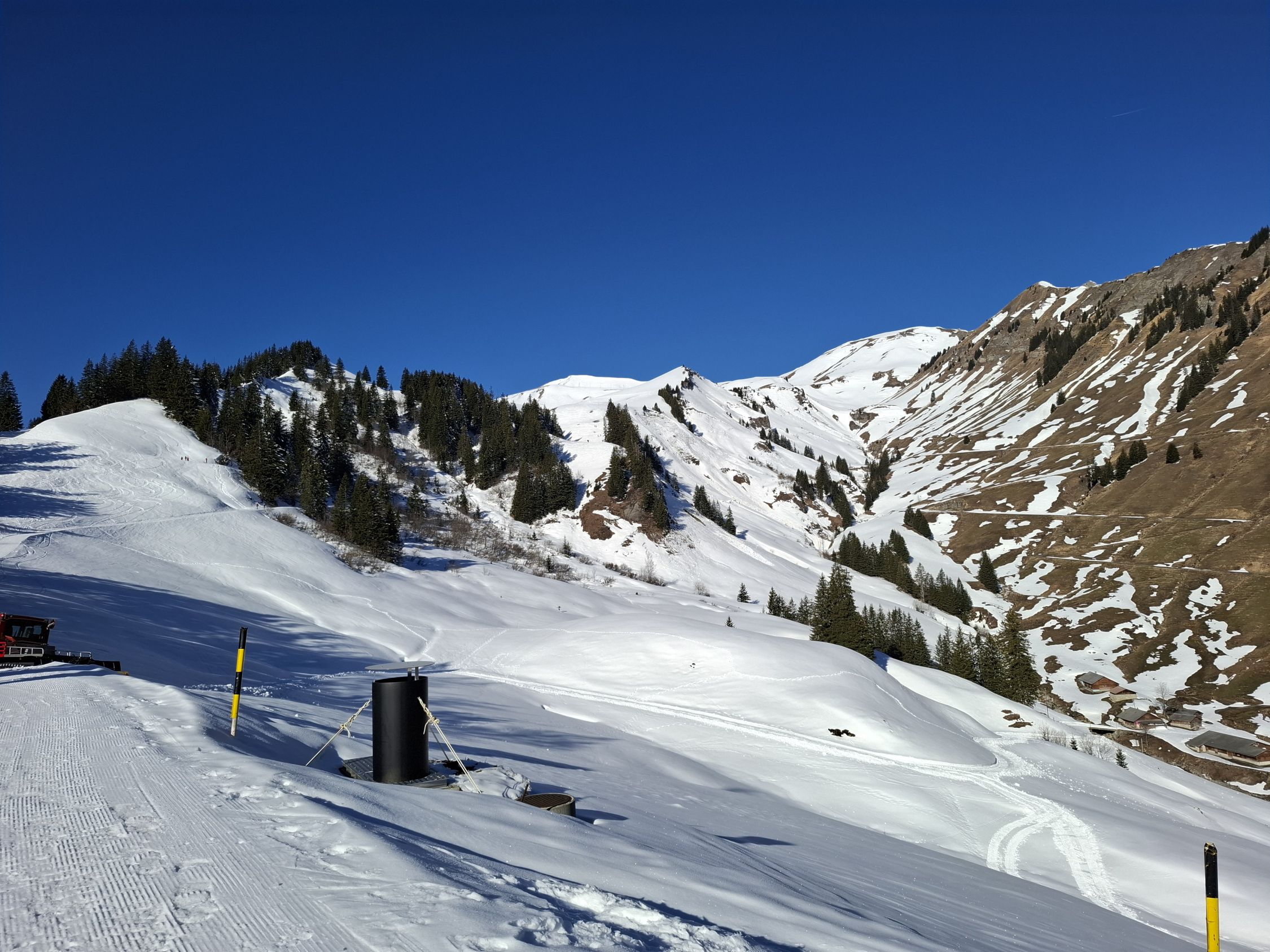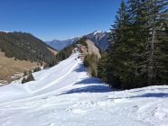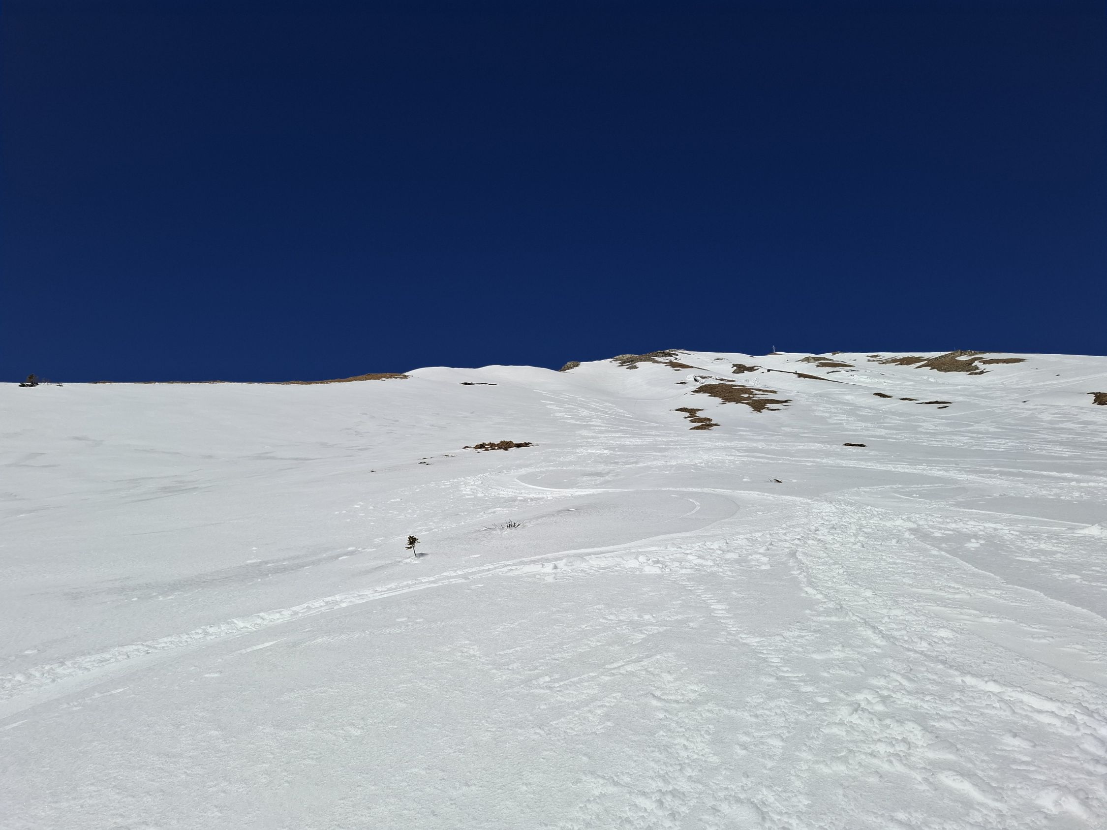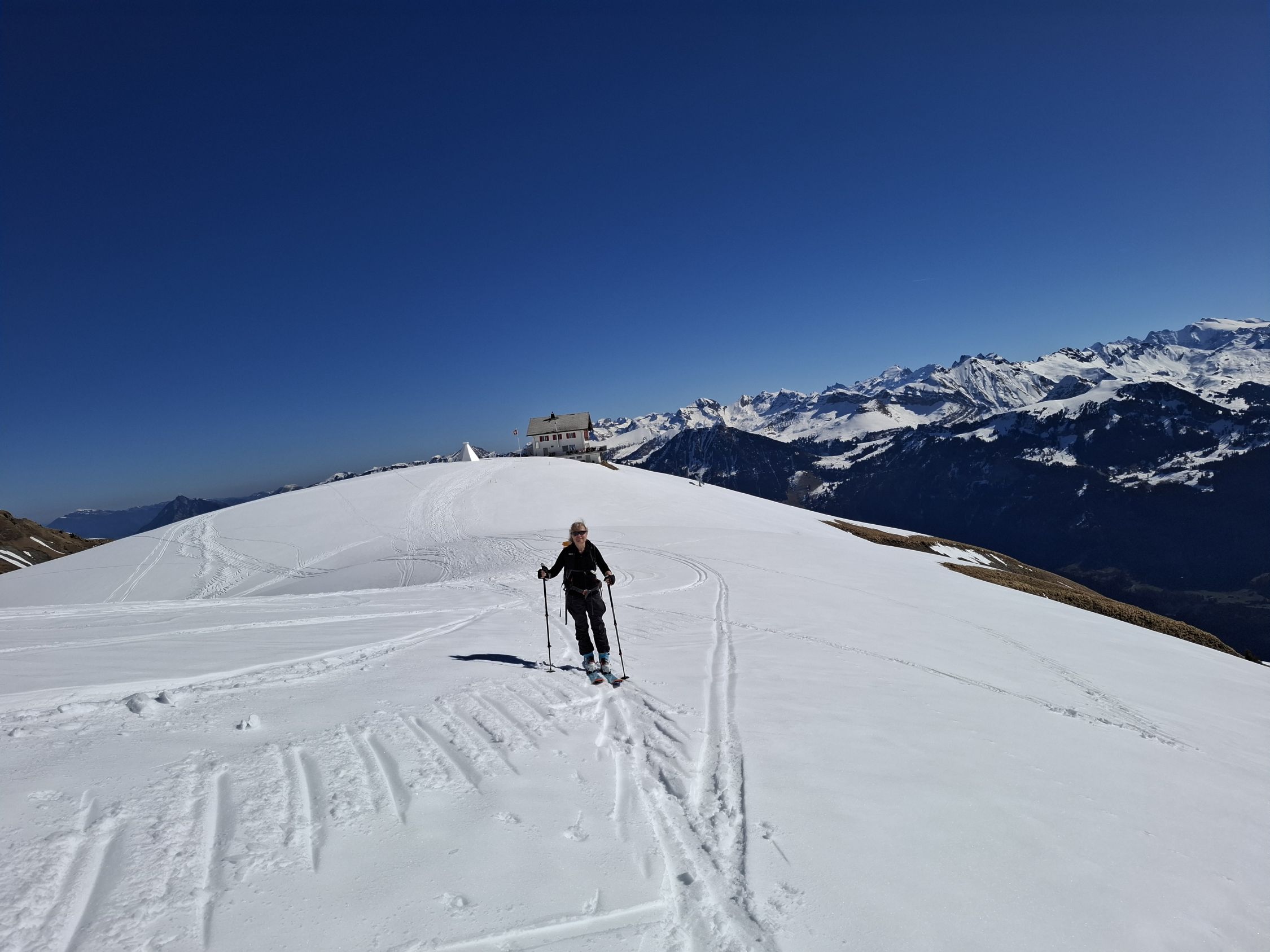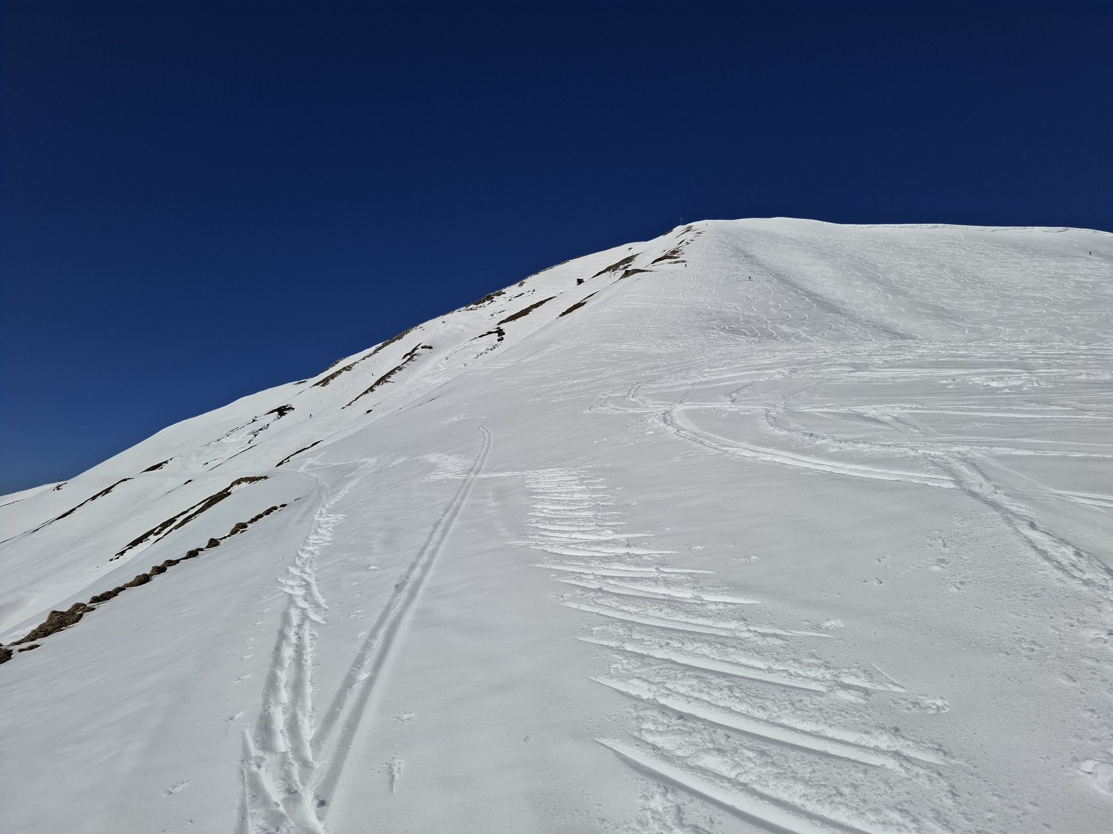 Schnee im Aufstieg teilweise (Schatten) hart und teilweise schon etwas weicher. Genügend Schnee vorhanden. Gipfelhang sehr schon sehr verfahren. Herrlicher Sulz, bei der Abfahrt. Nach der Abfahrt über die Üsser Alp ist der Übergang über den Lauibach ziemlich heikel (steiles Abrutschen und skibreiter Weg über die Brücke).