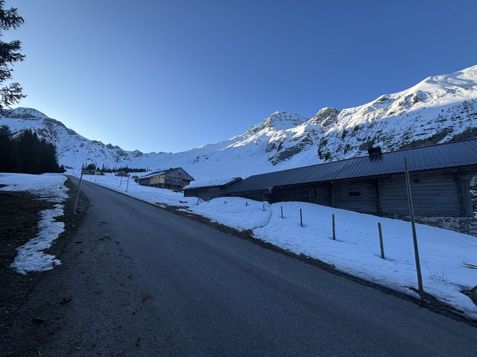 P.S.: Die Strasse im Färmeltal ist schneegeräumt bis auf 1'615m, die durchgehende Schneedecke beginnt beidseits der Strasse ab der Brücke (d.h. ab ca. 1'440m).