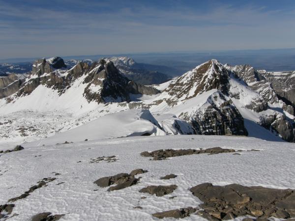 Ab Schoneggli 2250m geschlossene Schneedecke 5cm bis ≈ 90cm, teilweise angenehm hart, teilweise eher weich, auch an nicht sonnen-exponierter Lage. Lawinenmässig recht sichere Route.