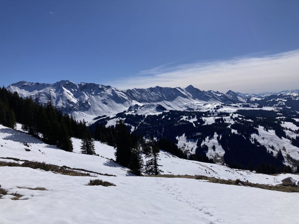 südseitiger Anstieg mit minimalstem Schneekontakt. Erste Krokusse und Enziane gesichtet. Im Abstieg zum Mittlistgfäl hats noch ordentlich Schnee, ist jetzt gespurt und gut machbar.