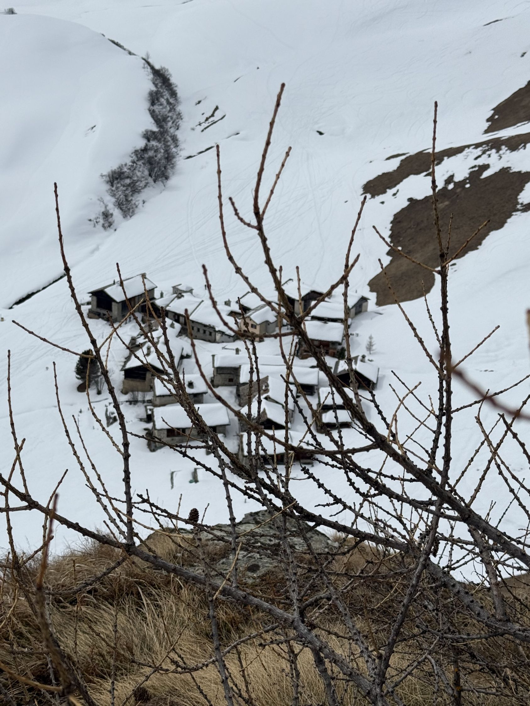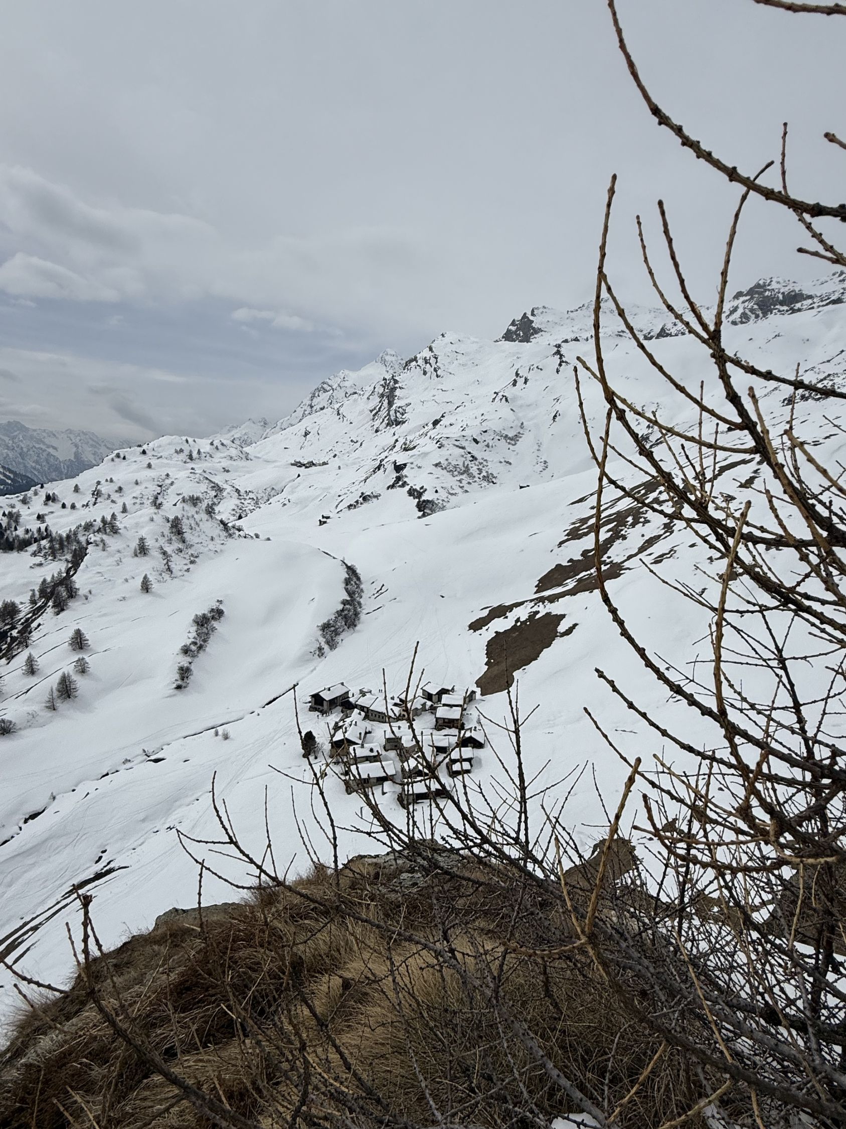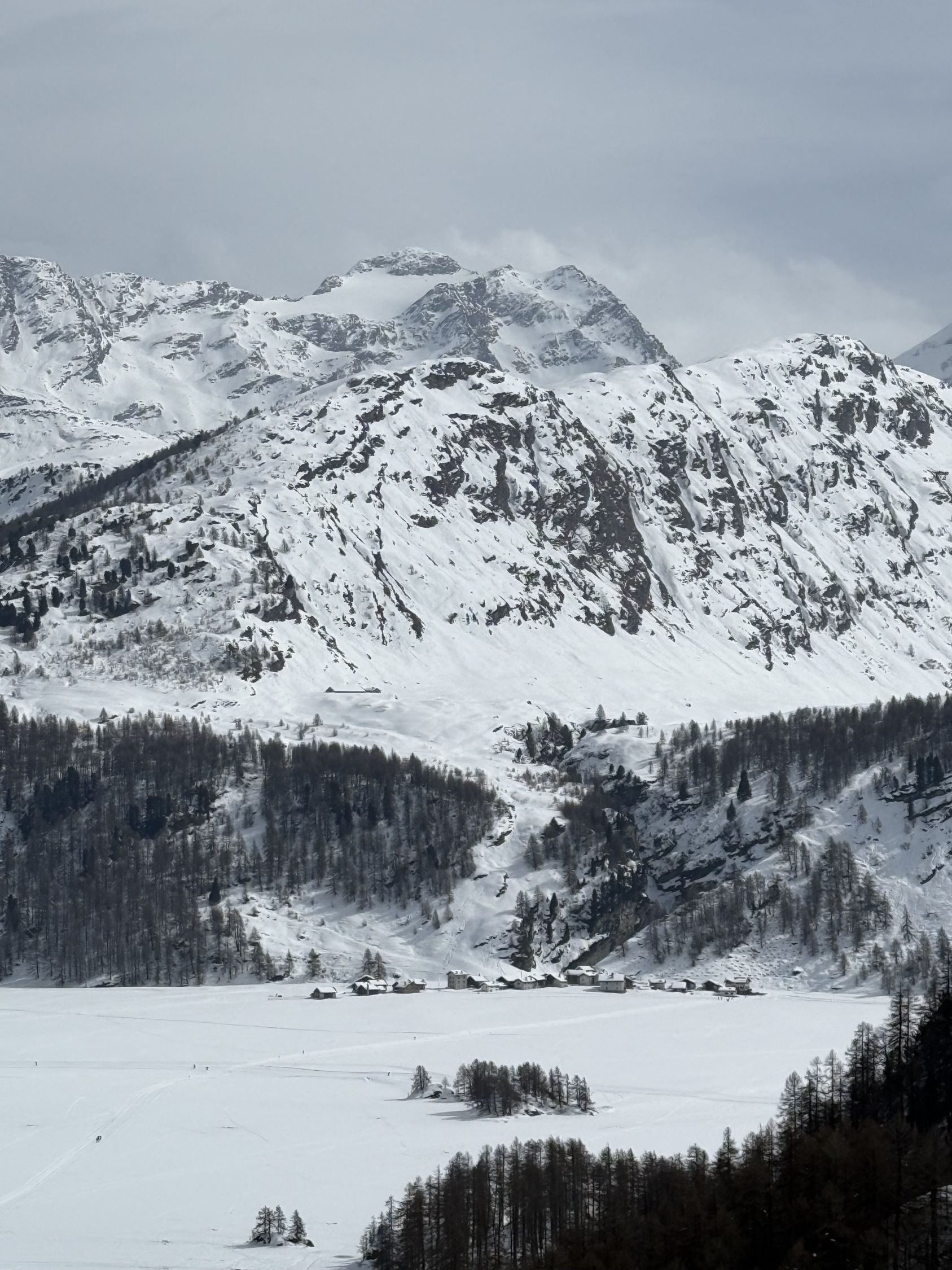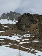 Kurze Wanderung auf den neuen Kletterpfeiler bei Grevasalvas oberhalb Silsersee, T4. Start in Plaun da Lej 10.30 Uhr, windstill, leichte Bewölkung mit Saharastaun, wenig Sonne. Bin mit Bergschuhe unterwegs, im Abstieg mit Grödel. Spur bis Grevasalvas, nachher viel Schnee, unterhalb Pfeiler aper, in der Aufstiegsflanke unten wenig, oben viel Schnee, Schneeschuhe von Vorteil. Auf dem kleinen Plateau mit steiler Kante Richtung Grevasalvas, der höchste Punkt befindet sich auf einem Felsblock, habe wegen zuviel Schnee verzichtet, von Westen sehr steil, von Osten besser. Abstieg wie Aufstieg. In der steilen Flanke befinden sich einige Fixseile mit eingehängten Expressschlingen. Vielleicht sind die Kletterrouten noch nicht fertig gebort?