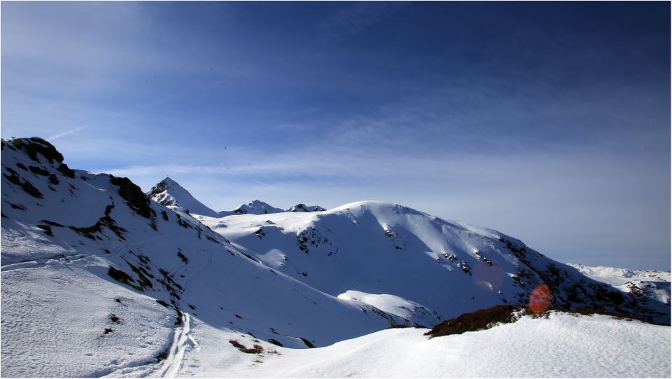 Vom Standkopf nach Süden in den großen Kessel bis auf ca 2000m abfahren, In östlicher Richtung unterhalb der Sagtaler Spitzen ein Stück aufsteigen, dann nochmal ein Stück abfahren,