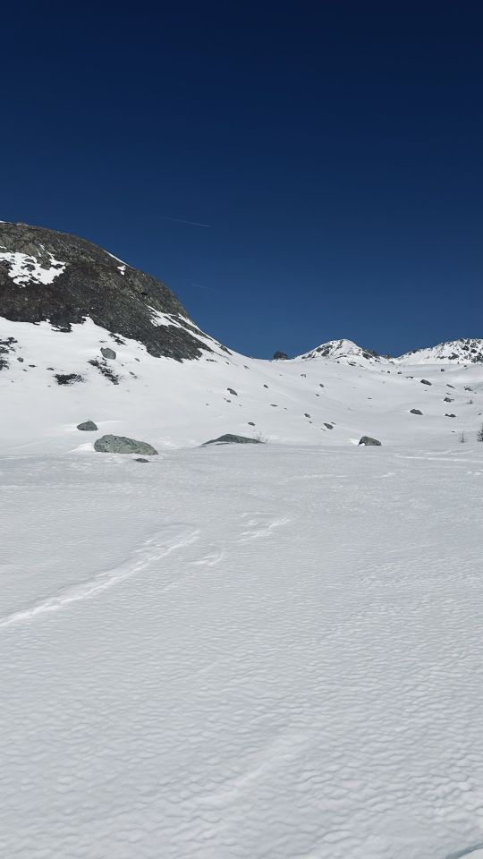 Start ab Keschhütte, gute Spur bis zum Skidepot. Guter Trittschnee im Aufstieg zum Gipfel, 2-3 heikle Stellen beim Aufstieg, kann beim Abstieg gut gesichert werden. Einige Bohrhaken und Abseilstellen sind frei. Abfahrt bis PP in Latsch sehr gut, sind dem Bachbett gefolgt, da Abstieg über Aufstiegsroute nicht möglich.