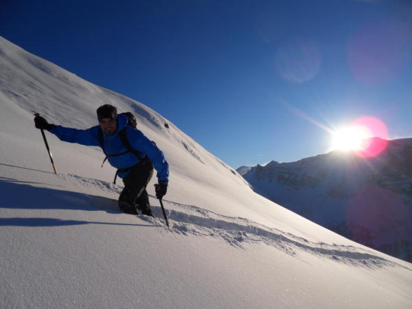Sehr kalt, am frühen Morgen noch beinahe windstill und sonnig. Bis 80 cm Pulver in der obersten Mulde. Ab 2000 müM unterlage, unterhalb Schnee nötig.