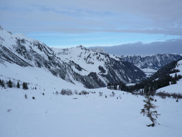 Von oben bis unten fehlt grundsätzlich die Grundlage. Ab Steibode sehr mühsame Spurarbeit da eine 3-4cm dicke hartnäckige Windharstkruste vorhanden war. In Mulden viel lockerer Kugellagerschnee, auf Rippen und Flächen wenig Schnee, da abgeweht. Im Chummli viel verfrachteter Schnee, daher bin ich sehr nach links ausgewichen. Der Grat zum Gipfel ist wie fast immer Verwächtet, doch recht gut zu gehen.