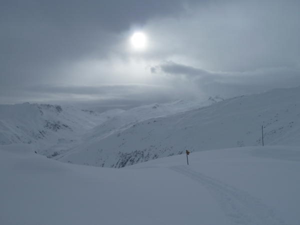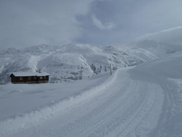 Weiterhin ist die Tour gut zu machen.Die Passstrasse ist perfekt angewalzt,auch für Wanderer und Schlittler geeignet.