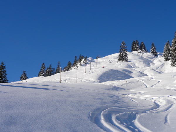 Bis Langenegggrat mässig Schnee ohne Untergrund, für den Aufstieg aber ausreichend. Ab Langeneggrain dann zunehmend mehr puderiger Schnee. Ganze Route liegt mehrheitlich im Schatten. Abfahrt bis Langenegggrat schöner Pulver, ab dann viele Steinkontakte.