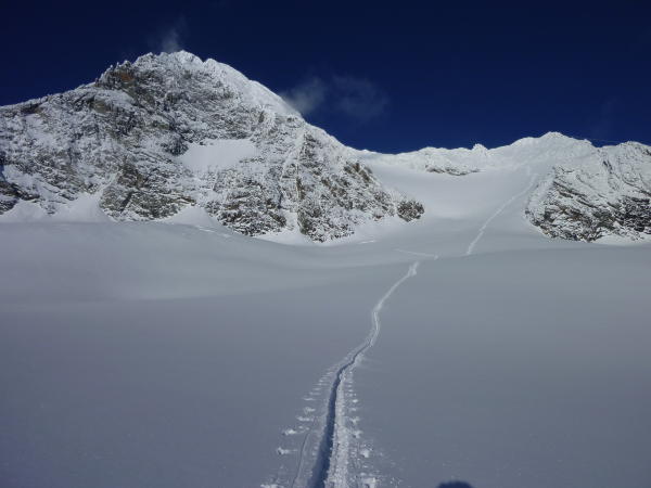 50 cm Neuschnee, dieser ist locker gefallen und vermittelt nahezu perfekte Tourenverhältnisse. Gletscher, Glocknerleitl und Grat tief verschneit.