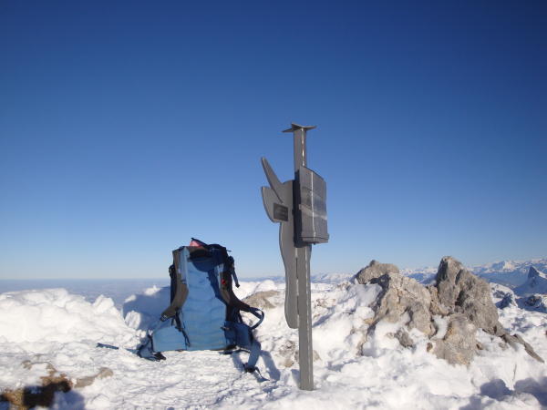 Trotz Sonnenschein heute sehr frisch auf dem Gipfel.