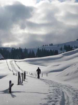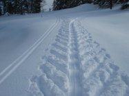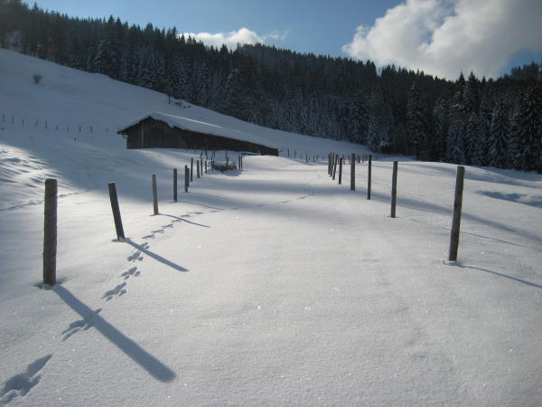 Ca. 30cm tollen Powder mit gut tragender Unterlage. Nur da wo der Wind hinkommt schaut das Gras raus.