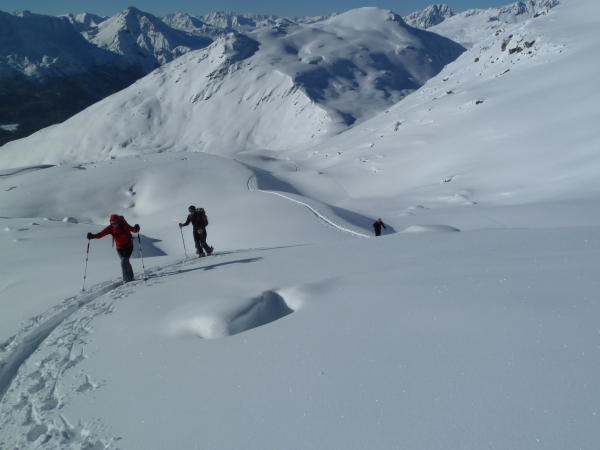 bestes Wetter und in den Mulden genügend Schnee. Stellenweise Steinkontakt.
