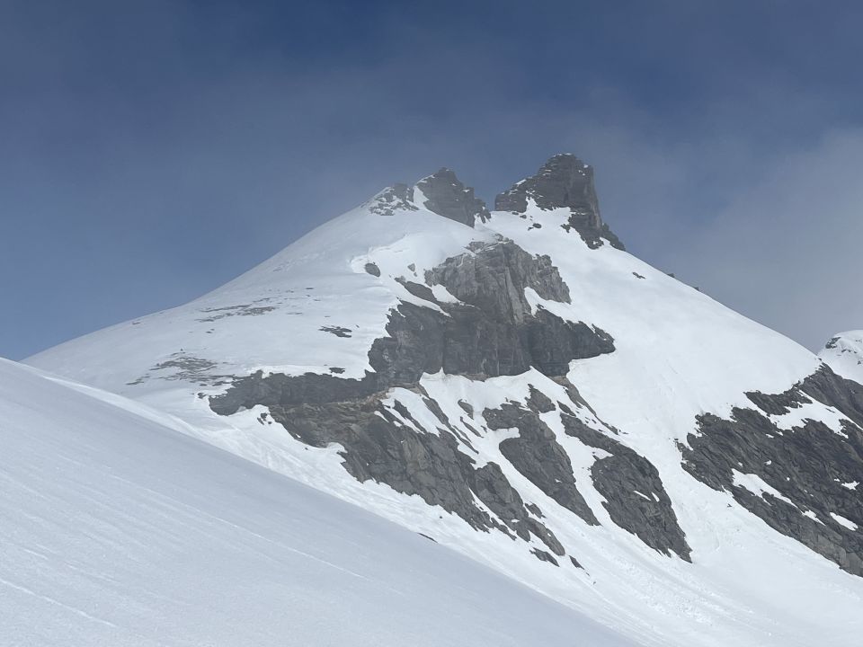 Südseite: Aper bis etwa 1700 m, dann bestens durchgefrorener Schnee bis fast zuoberst.