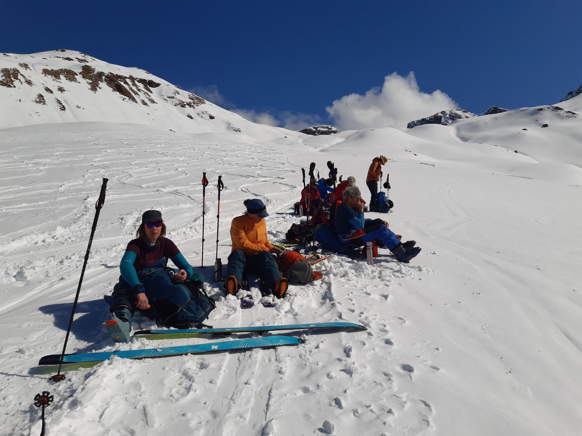 Schönes Wetter und kaum Wind genug Schnee ab Dorf , je nach Hangrichtung Sulz oder Pulver oder auch leicht krustig aber gut zu fahren