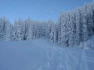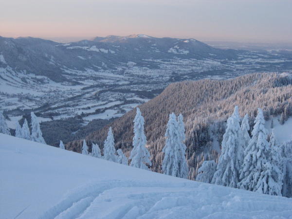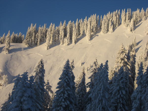Schön viel Schnee auf den Wiesen und auch im Wald, derzeit eine Tour ohne Sorgen um das Material. Es schaut so aus, dass sich daran auch so schnell nichts ändern wird. Für unbegrenztes Abfahrtsvergnügen darf sich der Schnee aber noch etwas setzen. Heute musste man häufig direkte Falllinie fahren, um nicht stehenzubleiben.