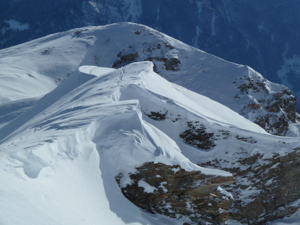 Variantenabfahrt vom Leiterfuss über den steilen Osthang ist zur Zeit kriminell--> Triebschnee!!!