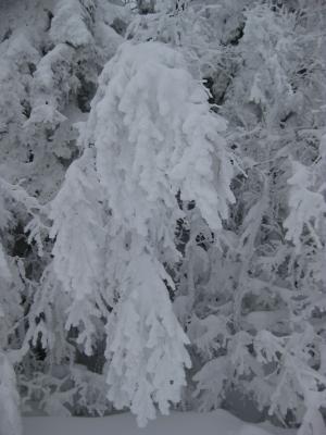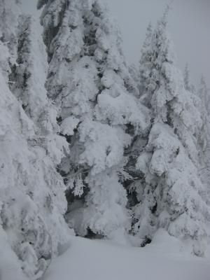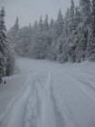 Tiefer Pulverschnee und märchenhaft verschneite Wälder! Obwohl erst am Nachmittag gestartet, heute starker Schneefall und in Gipfelnähe schlechte Sicht und bissiger Wind. Traumhafte Tiefschneeabfahrt über zum Teil steile Hänge!