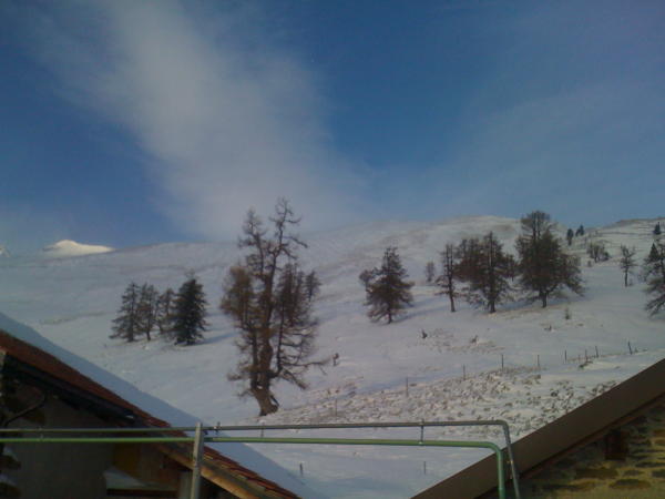 Oberhalb der Waldgrenze ist der Unterschied sogar für einen Afrikaner sichtbar. Dort, wo noch weiss, extrem geladen mit Triebschnee, der Rest ist grün.