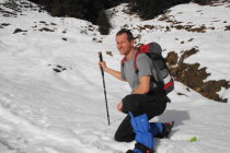 Auf der ganzen Route wenig Schnee, komlett durchnässte Schneedecke von unten bis oben. Vorsicht, Gratwechte nicht zu weit aussen traversieren! Der Gipfel ist fast komplett abgeblasen.
