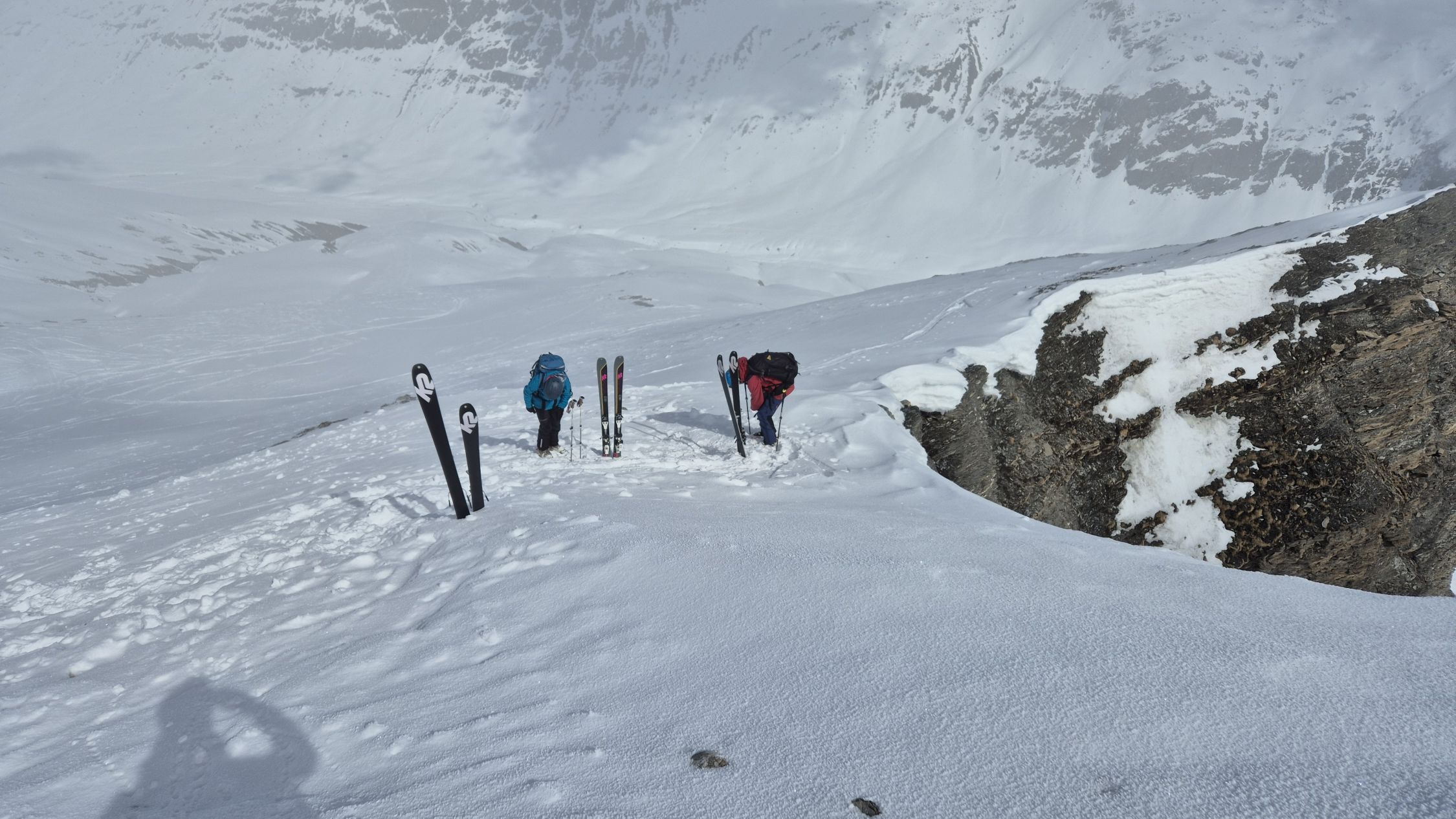 Bis kurz vor Gipfel gute Spur. Die letzten paar Meter zu Fuß hoch (Steine).