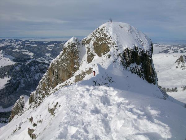perfekte Verhältnisse, schöner Pulver. Der Aufstieg zum Hauptgipfel ist ausgesetzt, Trittspuren vorhanden.