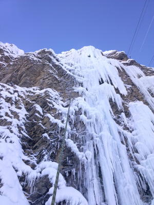 Der Klettergarten wird dauernd berieselt und wird daher nur noch mehr Eis geben, sofern die Temperatur hält