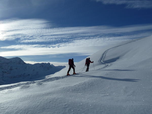 Auf den letzten 400 Höhenmetern abgeblasen, ansonsten viel Powder.