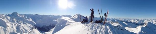 Besten Dank an die Aufstiegsspur vom Gletscher zum Ducan Pitschen :)! Windstill auf dem Gipfel und schöne Aussicht zum Piz Kesch. Lange Gipfelrast, wiedermal mit einem kühlen Blonden, Gipfelkrüter und ausgiebiger Diskusionen betr. den umliegenden Gipfel.