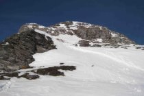 Fussaufstieg ab Skidepot auf einer kurzen Strecke momentan recht heikel: wenig Schnee auf Fels und Gras, der aufgrund der Südexposition auch schnell weich wird. Da eine gewisse Absturzgefahr besteht, lieber verzichten.