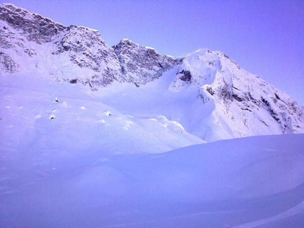 Ich habe die Route gespurt. Sehr gute Schneelage, kein Steinkontakt. NE-Couloir sehr gut eingeschneit. Teils Pulver, teils Windharsch angetroffen.