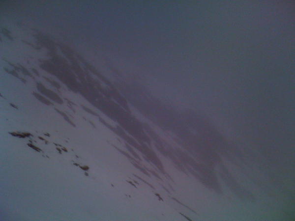 Fast kein Schnee mehr, nur noch in Rinnen fahrbar.