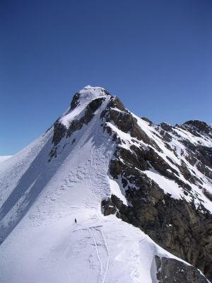 Für die Besteigung des Gipfels sind Steigeisen vom Vorteil, oder man wählt den Sommerweg mit den Ketten. Dieser Aufstieg problemlos. Auf der Abfahrt zuerst Pulverschnee und dann Sulz. Von oben bis unten ein Traum. Die Abfahrt sollte nicht später als 12.00 Uhr gewählt werden, denn später in den unteren Regionen zu warm.