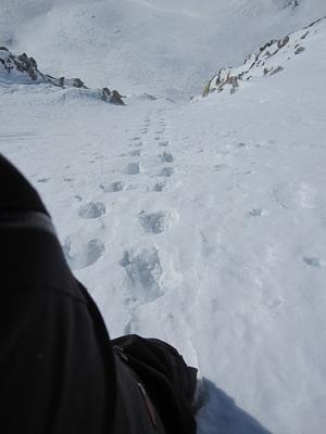 Viel windgeprägter Schnee. In der SW-Flanke bildet sich bereits ein Deckel, teils tragend, teils bricht man noch durch. In der Flanke hat es guten Trittschnee, brauchten weder Steigeisen noch Pickel. Aber Achtung, dass kann sich sehr schnell Ändern. Die Spur von Alex Dirigo vom 31.12.2010 war vorallem in der SW-Flanke noch zu sehen. Sonst alles verblasen....Waren Ganztags alleine unterwegs.