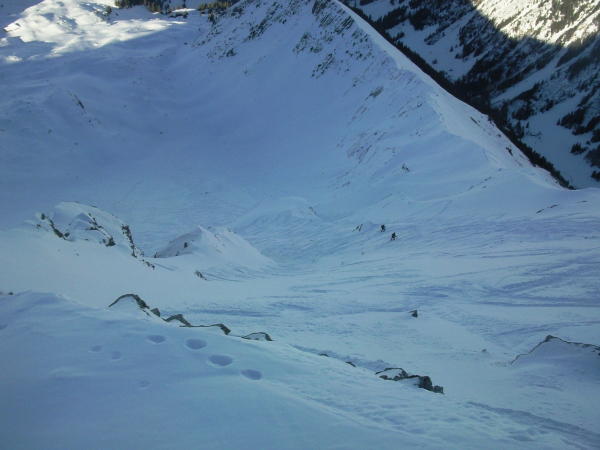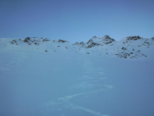 Ein altes Schneebrett im Gipfelhang. Sonst nichts.