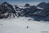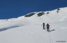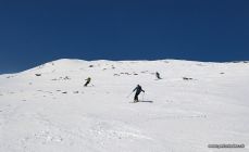 Heute strahlend schönes Wetter und toller Sonnenschein vom Morgen weg. Der Schnee war heute beim Start um 8 Uhr hart geforen und trug durchgehend bis zum Gipfel. Oben hat es zirka 2 cm Neuschnee auf der harten Unterlage.