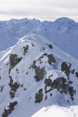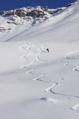 Ausreichend Schnee, bei der Abfahrt ins Mitteltälli wegen der Steine etwas Vorsicht angebracht. Gute Verhältnisse, im oberen Teil bis ca. 2.400 m noch freie Pulverhänge möglich, darunter sehr zerfahren.