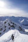 Der Gipfelgrat ist bestens gespurt mit badewannengroßen Tritten. Merci den Spurenden.