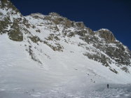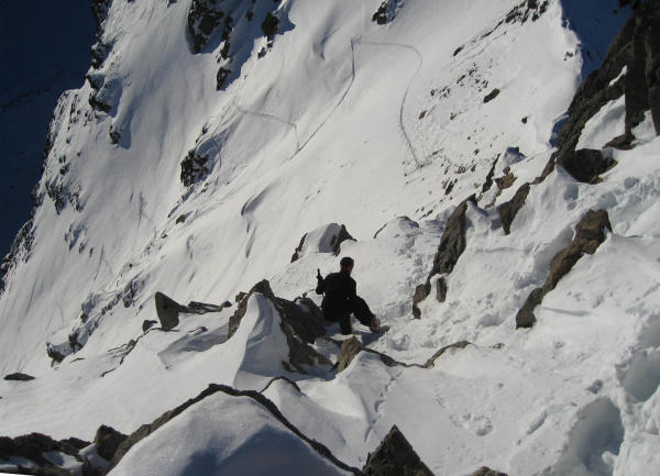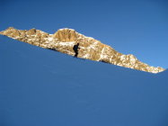 Sind mit Ski bis zum Grat aufgestiegen. Fusspassagen sind sehr mühsam, da kein fester Tiefenschnee (Wühlerei!)