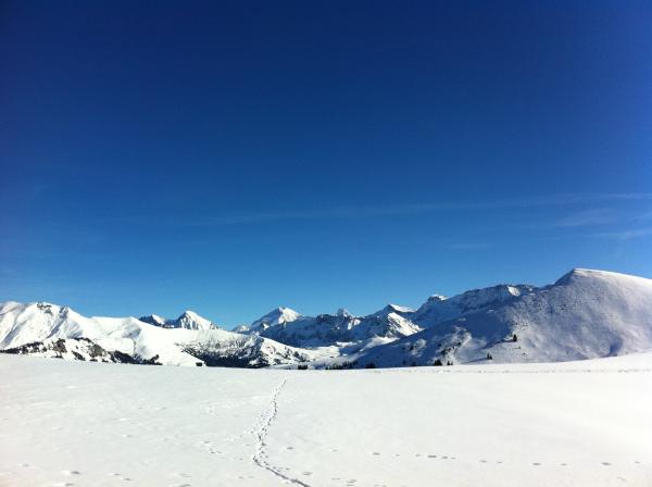 Bis 1500 wenig Schnee, darüber flotter Pulverschnee gefunden, trotz schon vieler Spuren.