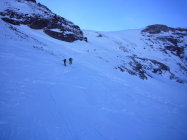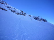 Bis zum Früestückplatz steile aber gute Spur. Querung nach dem Früestückplatz teilweise abgeblasen.
