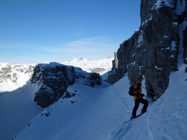 Beim Aufstieg gut tragende Schneedecke, zum Teil mit eisigen Stellen, aber es ging noch ohne Harscheisen. Nach 4 Stunden Aufstieg die Sonne und die prächtige Aussicht auf Klausenpass und Clariden genossen. Die erste Hälfte der Abfahrt noch Pulver (etwas griesig), weiter unten dann sehr zerfahren und bruchharstig.