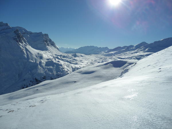Bis auf einen Schneeschuhgänger ganz allein unterwegs.
