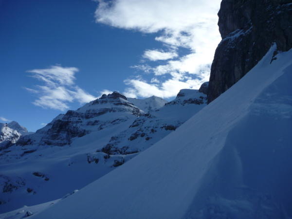 Mehrere Nassschneerutsche wahrscheinlich am Vortag heruntergegangen.