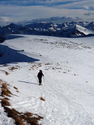 besser als gedacht - im gegnsatz zur routenbeschreibung bereits ab Liftparkplatz durch den Wald aufgestiegen. Dort zunächst grenzwertig, viel Gras. Später auch im Wald ok. Gipfelaufbau Freschen war neu zu spuren bei herrlichem Wetter und grenzwertig wenig Schnee. Abfahrt dann ganz spassig in leichten Sulz oder zerfahrenen gesetzten Pulver.