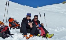 Kleine Eingehtour nach der Anreise.Noch einiges an windgepresstem Schnee und anderen mehr oder weniger hinterfozzigen Deckeln.Ändert sich aber zusehends: bei permanenter Sonneneinstrahlung und klaren Nächten kommt bis übermorgen der Superfirn!