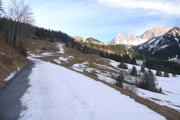 Strasse ab Talstation Rothornbahn schneebedeckt (bzw. Eis), Aufstieg und Abfahrt ab Postauto möglich. Zwischen Emmenrank 1377 und Brücke 1360 kein Schnee auf dem Weg. Ab 1360 bis Gipfel ausreichend Schnee. Schnee hart, pistenähnlich, z.T. 2 cm Neuschnee von letzter Nacht. Schnell und gut zu fahren. Auf der Abfahrt sind wir wegen Triebschnee bei Pt. 2072 nicht ins Arnitäli abgefahren, sondern erst bei 1950 m.