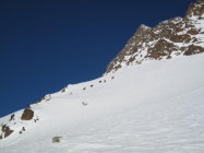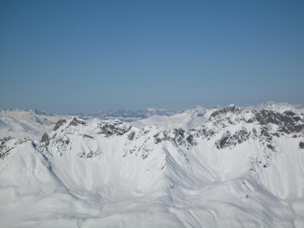 Im Südhang unter dem Piz Cotschen Wummgeräusche.Zum Glück waren wir früh unterwegs.Starke Erwärmung
